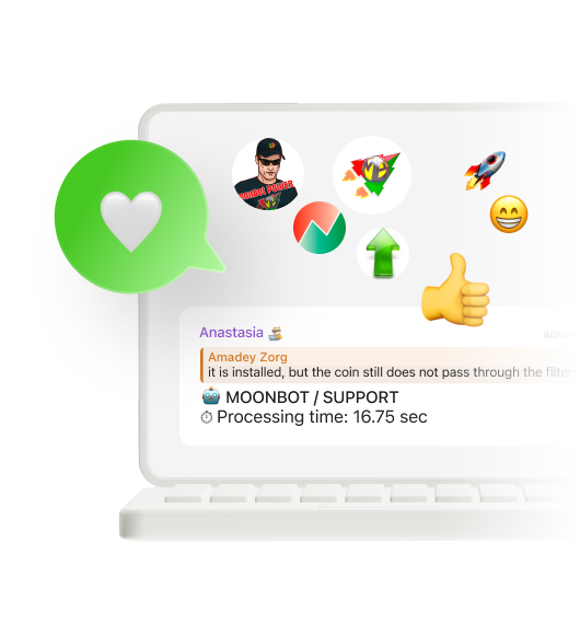 Terminal users have access to Moonbot Academy, a knowledge base, and an active trader community.