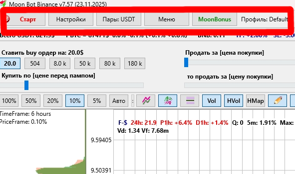 Moonbot is a professional trading terminal for cryptocurrency markets, designed for both manual and automated trading. The terminal c500onnects directly to Binance, HTX, Bybit, Gate, and Bitget exchanges via API keys and provides advanced tools for analysis, order management, and strategy automation.