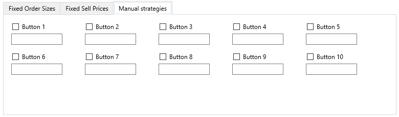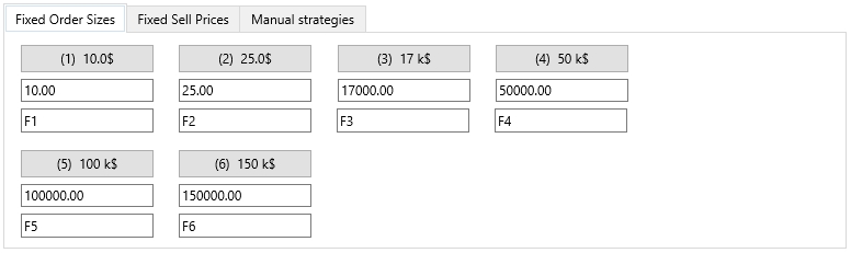 At the top of the tab is a block of tabs: Fixed Order Sizes, Fixed Sell Prices and Manual strategies.