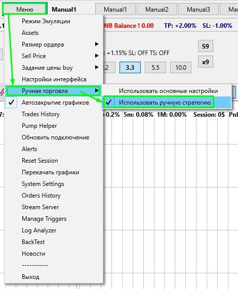 In addition, the Moonbot terminal allows you to create buttons for selecting Manual strategies at the top of the main window and assign hotkeys to these buttons.