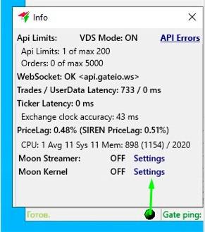 Also, in Moonbot Client, when working with Moon Kernel functionality, ping data will be displayed (see the figure below):