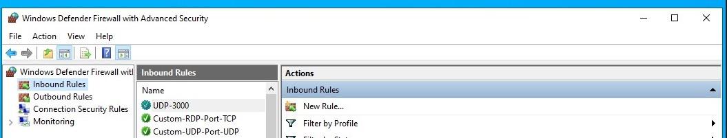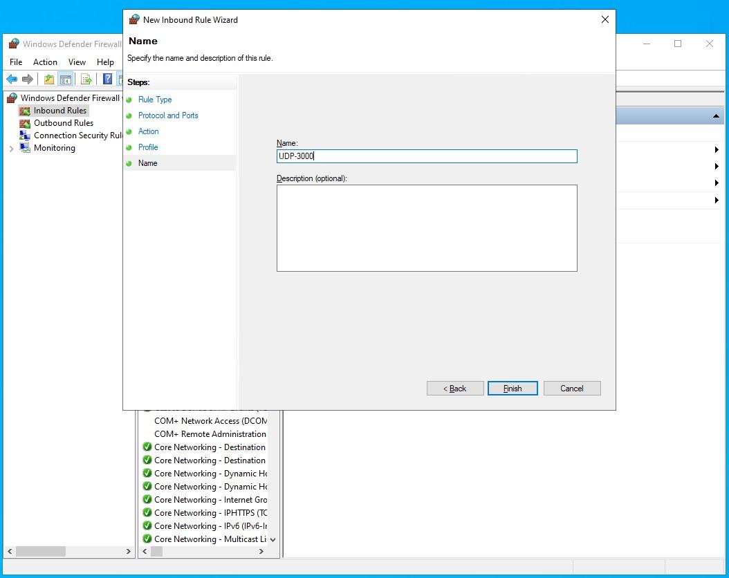 1. On the VPS, open a free UDP port for incoming connections in the Windows firewall.