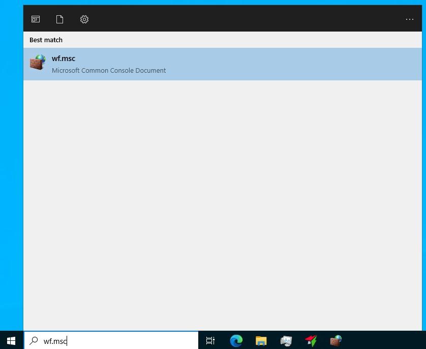 To do this, enter wf.msc in the Windows search field and run it to open the Windows Defender Firewall with Advanced Security window.