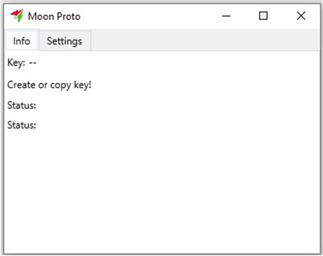 In the Moon Proto window, on the Settings tab, only the beginning of the key is visible, the full key is not displayed here - this part is only needed to visually confirm that the keys begin the same way;