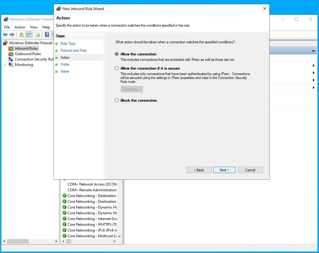 In the next window, make sure the Allow the connections option is selected and click Next: