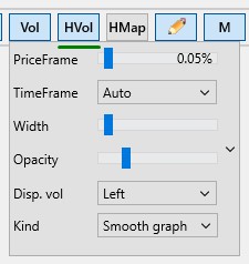 Disp. vol – enables digital volume display on the cursor, either to the right or left of the histogram