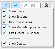 The “Funnel" button enables or disables the display of filters on charts. Right-clicking this button opens an additional settings menu: