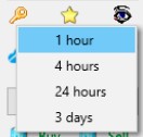 - The yellow key indicates that the coin has been added to a temporary blacklist. To do this, right-click on the Lock icon and select one of the four time options from the menu: 1 hour, 4 hours, 24 hours or 3 days. The log will then contain an entry specifying the coin, the fact that it has been blacklisted, the date (MM.DD) and the time (hh.mm.ss) when the block ends.Example of a log entry when using the temporary blacklist: "market does not meet the conditions: Market BTC BlackListed until 15.03 19:07:39"