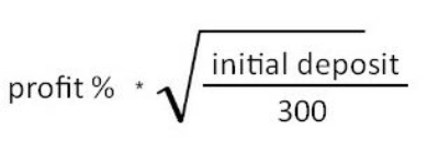 The Score is calculated automatically based on the change in the deposit value in USDT equivalent and takes into account both the absolute profit and the size of the initial deposit, according to the following formula on the right.