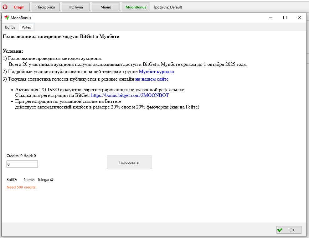 Clicking on this button opens the MoonBonus window with two tabs: MoonBonus and Vote.