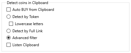 If the Detect by Token option is selected, the search will be performed based on the coin token (coin name).