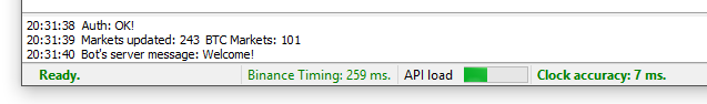 The main nuance when working with the Binance exchange via API is the limit on the number of operations per minute. If the limits are exceeded, the exchange temporarily blocks the IP address for several minutes. Therefore, Moonbot continuously monitors API load; when approaching the limit, operations will be executed with delays.