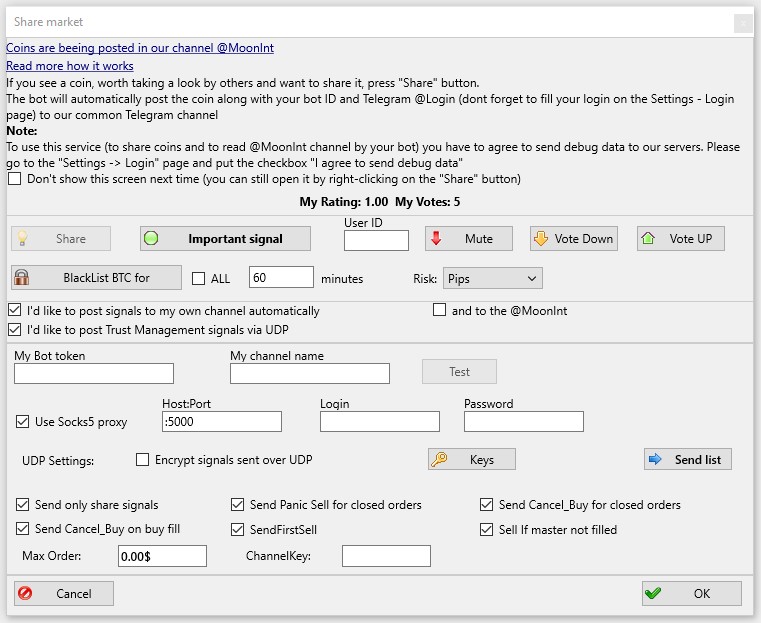 For this purpose, a trust management mechanism via the UDP protocol was implemented. It allows commands to be transmitted between Moonbot terminals with virtually no delay. This functionality is available only in the PRO version.