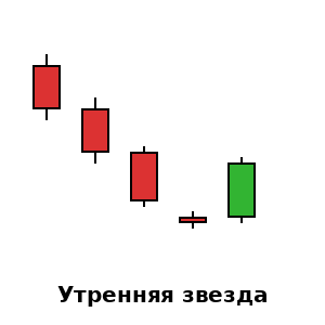 A three-candle pattern at the bottom of a downtrend. The first candle is a long-bodied red candle, the second is small (any color) with a downward gap (opens below the previous close), the third is a green candle closing above the midpoint of the first. Signals an upward reversal — the initiative shifts from sellers to buyers.
