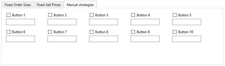 В верхней части вкладки расположен блок вкладок: Fixed Order Sizes, Fixed Sell Prices и Manual Strategies.