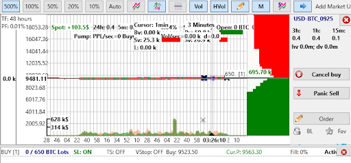 Исходя из п.1, меняется вся математика объёмов: объёмы в книге ордеров и объёмы трейдов идут в лотах, терминал пересчитывает их в USDT. Объемы ордеров показаны в лотах, как на бирже; Баланс показан в BTC, размер ордера задается также в BTC.