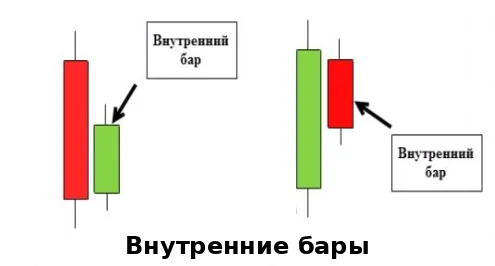Свечи, которые полностью помещаются в диапазон предыдущей свечи (и максимум, и минимум ниже соответствующих значений материнской свечи). Показывают консолидацию и накопление сил для дальнейшего движения в направлении тренда.